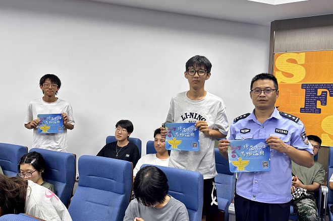 为进一步增强大学生的安全防范意识,构建无毒、无诈的和谐校园环境,9月3日晚19:00,开云手机登录入口开展“禁毒反诈宣传进校园”活动。无锡市公安局禁毒支队二级警长陈丽丽、许峰,无锡市公安局滨湖分局禁毒大队教导员王达峰,滨湖分局雪浪派出所民警康伟锋,开云手机登录入口辅导员朱家烨、法学院辅导员孟飞以及开云手机登录入口、法学院部分2024级本科新生到场参加。