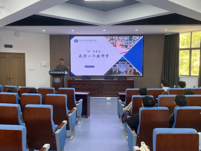 学院本科生、研究生参加本次分享会。活动开始,入职无锡市玉祁中学的24届张羽洁为在座的同学们详细介绍了备考教师的过程。她特别强调了备考期间要密切关注考试信息,同时分享了自己入职后的感受以及一名合格的英语教师所应具备的基本素养。